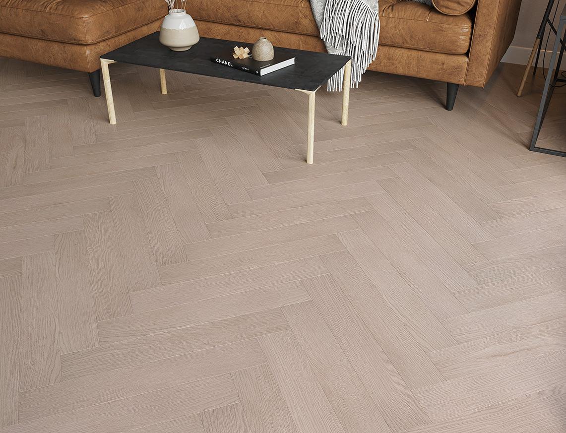 The Euro Heritage 8 mm Herringbone Laminate – Smoky Ash Oak pairs a soft grey-oak tone with a timeless herringbone layout, creating a modern yet classic finish that’s durable, easy to maintain, and beautifully understated.